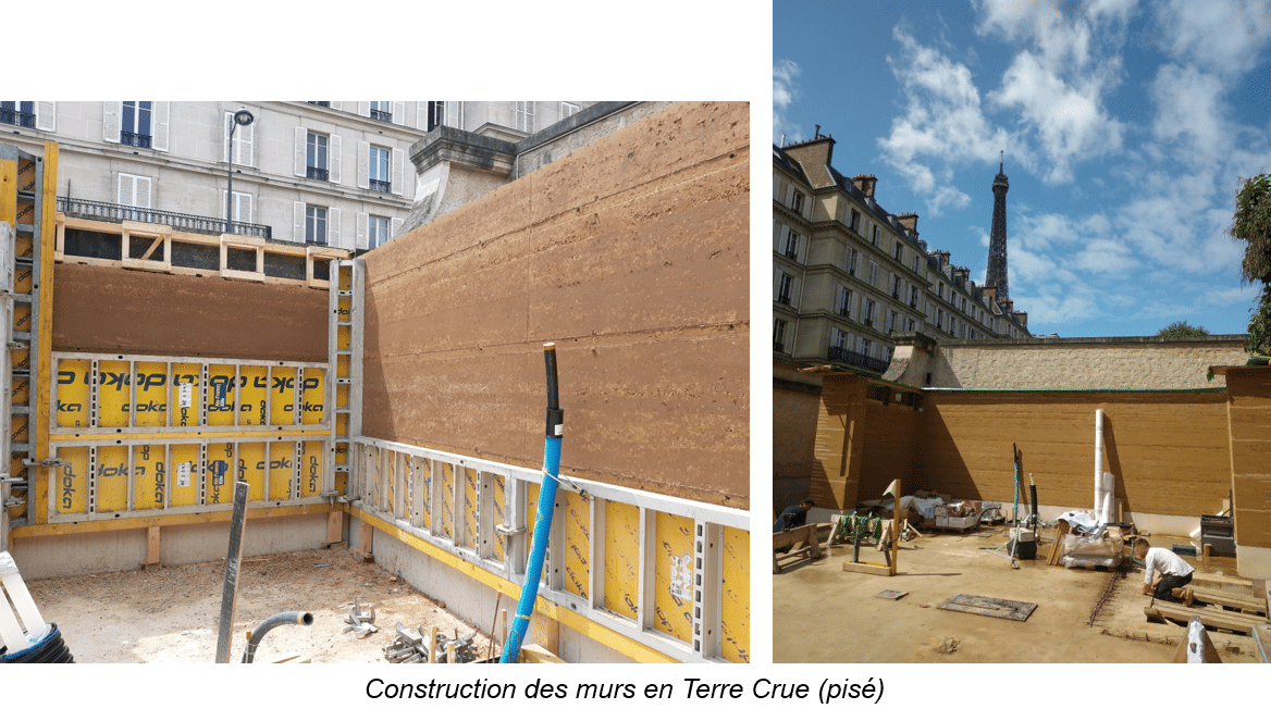 C’est au cœur du Palais de l’Alma, bâtiment historique situé entre l’église orthodoxe et la Tour Eiffel dans le 7ème arrondissement de Paris que le projet est né : la construction d’une crèche et d’un accueil enfants entièrement en terre crue et bois.