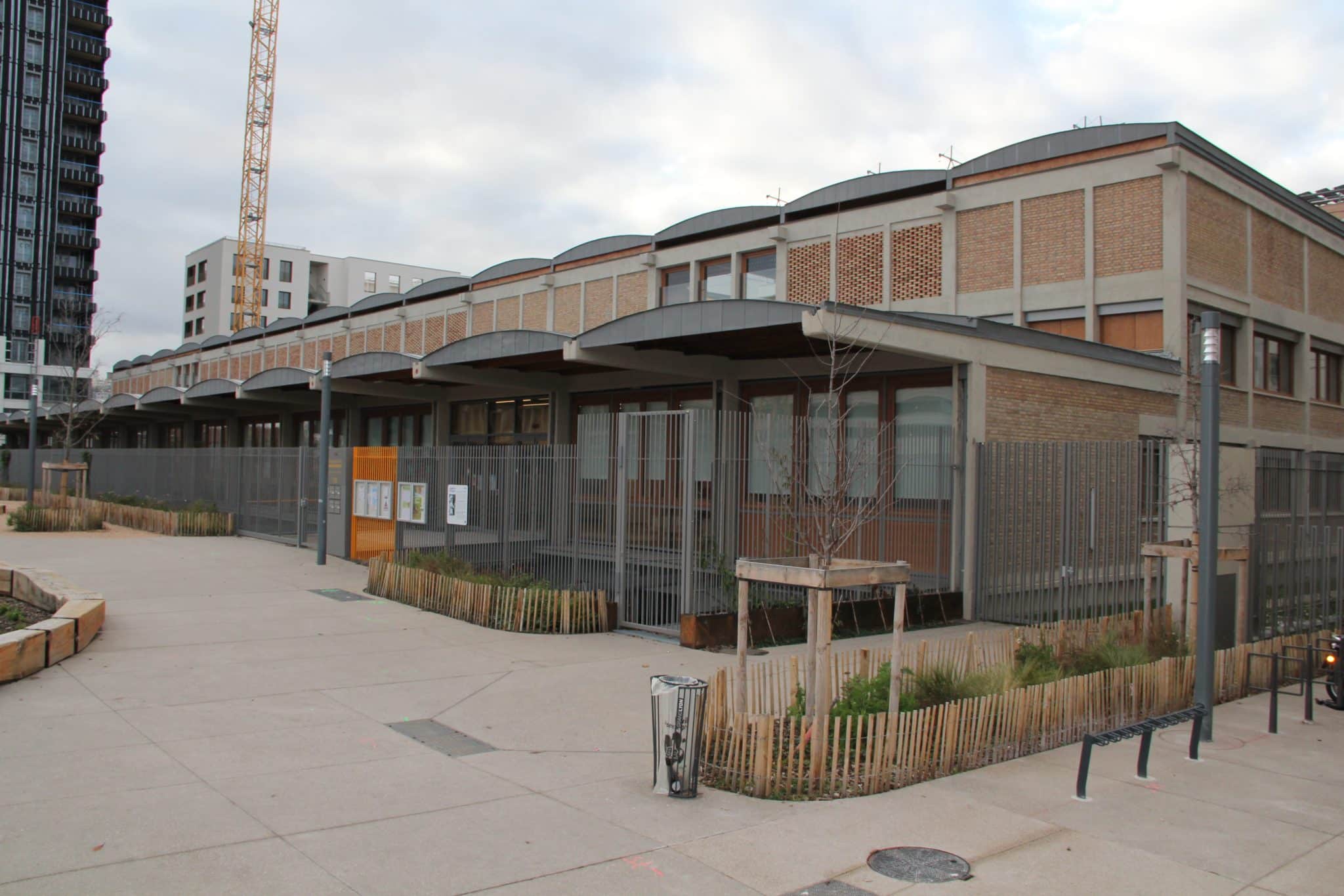 La transformation de 15 travées de l’ancienne halle en un groupe scolaire impliquait la préservation de l’architecture existante, la réutilisation de certains espaces, l’utilisation de matériaux écologiques tels que la terre cuite de récupération et le bois, ainsi que la végétalisation des espaces.