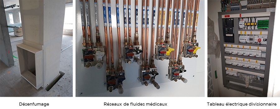 Ce dispositif nécessite inévitablement que chaque zone puisse fonctionner indépendamment des autres, que ce soit au niveau des fluides médicaux (oxygène, air médical, vide…) qu’au niveau de l’électricité. Cela permet également d’assurer une continuité des activités lors des maintenances.