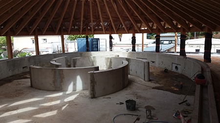 Comme le précise Mathieu Morgon, ingénieur Technique en Contrôle technique de construction, « la conception du bassin en béton reposant sur une structure bois a nécessité des calculs/justifications complexes en raison des comportements différents des matériaux. Il était nécessaire de prendre en compte les spécificités propres à chacun des matériaux, et une coordination des bureaux d’études structure bois et béton a été indispensable. »