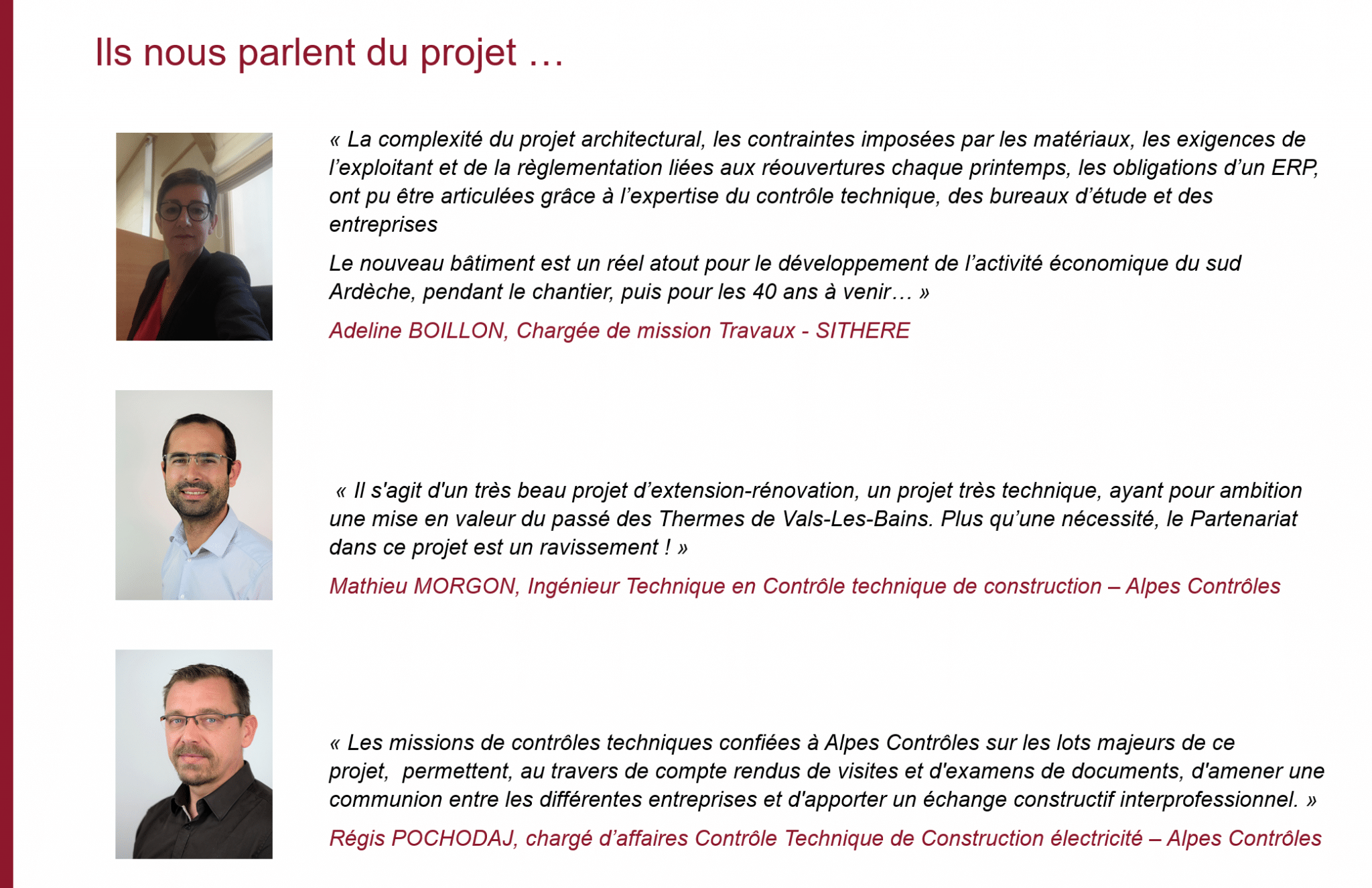 Sur les différentes phases d’exécution, l’équipe d’Alpes Contrôles a multiplié les visites de chantier (régulières et spécifiques aux phases à risques), les examens de dossiers ainsi que les échanges avec l’ensemble des intervenants pour assurer un suivi optimal de l’opération. Les comptes rendus de visites et de documents ont ainsi permis le suivi et la gestion des différentes problématiques techniques et réglementaires au fur et à mesure de l’avancement du chantier. Pour les différents intervenants, les avis émis ont été perçus comme une réelle assistance technique et réglementaire pour le bon déroulement du chantier.
