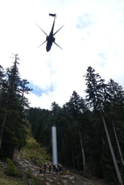 « En ligne, la plupart des pylônes ont été récupérés sur deux anciens appareils des stations de Montgenèvre et Val Thorens. Quand on réutilise des structures métalliques, on doit réaliser des recalculs suivant la nouvelle configuration. Il y a notamment les prises au vent, les hauteurs et les portées qui peuvent être différentes. On doit alors prendre en compte ces nouveaux paramètres pour s’assurer que les capacités ne sont pas dépassées» a précisé Laurent BOCH, ingénieur structure chez Alpes Contrôles et spécialiste en Génie Civil.