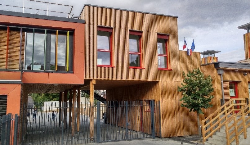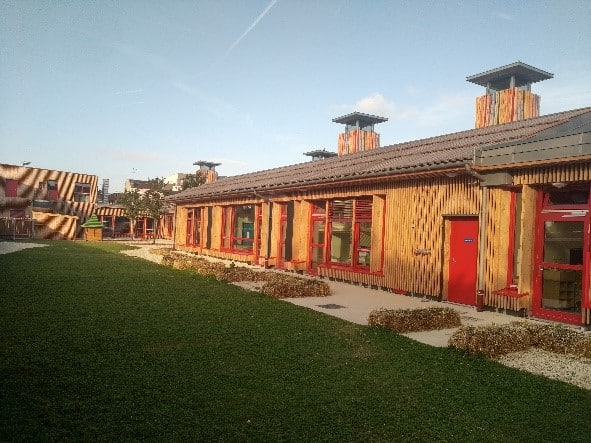 L’école maternelle des Boutours à Rosny-sous-Bois est un projet pilote en terme d’éco-construction. Constituée de matériaux biosourcés, elle est composée de deux bâtiments mélant des techniques de construction innovantes : la paille porteuse pour le bâtiment de plein pied, le bois et la paille pour le bâtiment à étage. Bioclimatique et de performance passive, il est doté d’une toiture cultivée et d’un système de ventilation naturelle avec récupération de chaleur dont le fonctionnement repose sur un puit canadien et des façades respirantes.